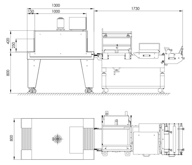 本套設(shè)備由熱收縮機(jī)和封切機(jī)兩個(gè)部分組成。采用”L”型人工封切,然后自動傳輸進(jìn)收縮機(jī)室,完成收縮過程;