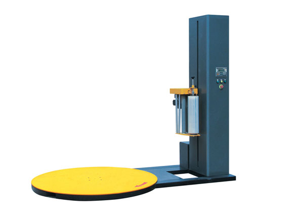膜隨轉(zhuǎn)盤運(yùn)轉(zhuǎn)自動(dòng)纏繞,同時(shí)轉(zhuǎn)盤計(jì)數(shù),當(dāng)?shù)竭_(dá)底層設(shè)定纏繞層數(shù)時(shí)膜架開始上升。