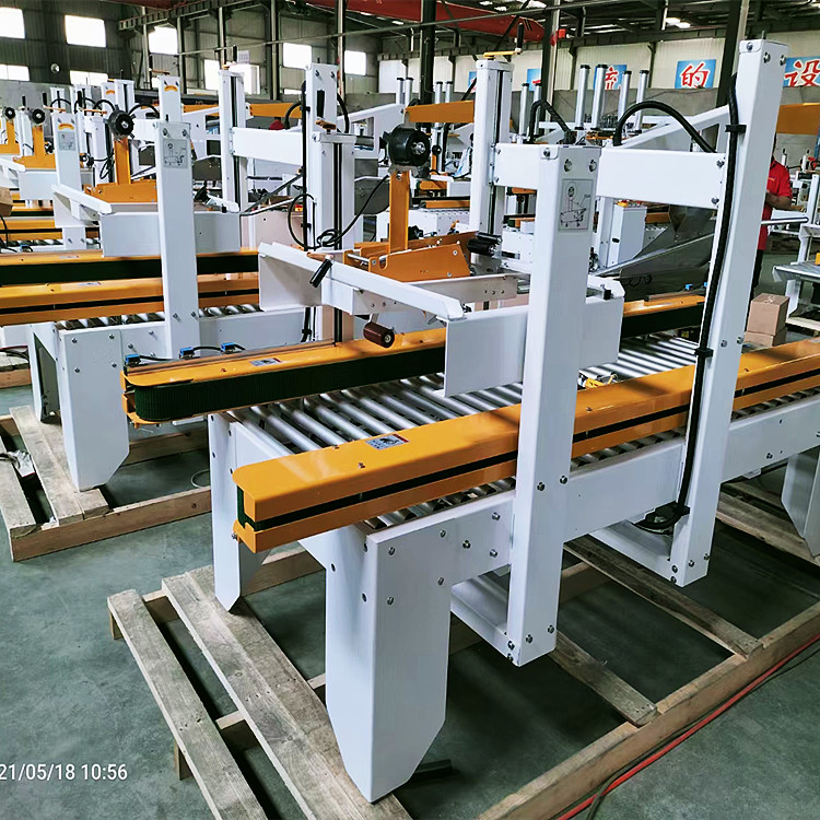 3、膠帶封箱機封箱后膠帶折角處呈現小尾巴,影響封箱漂亮度,是因為機器的滾輪調理得過,需將滾輪恰當調高以到達的封箱機作用。